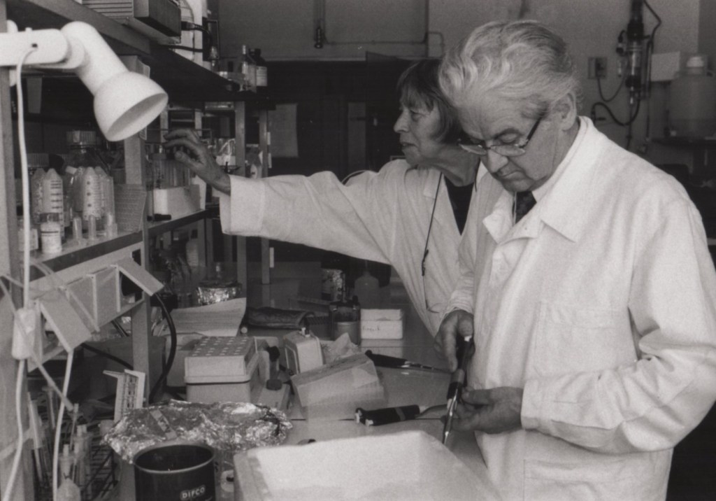 Avec Sonia Vincent au laboratoire Joseph Fourier à Saint Martin d’Hères pour la préparation de l’exposition au Musée départemental de Saint-Antoine l’Abbaye (Isère) en 1999.