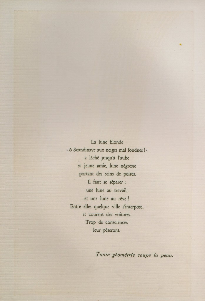 Poèmes calligraphiés en couleurs et en or par Marc Pessin en calligrammes sur vélin d’Arches – Octobre 1982.