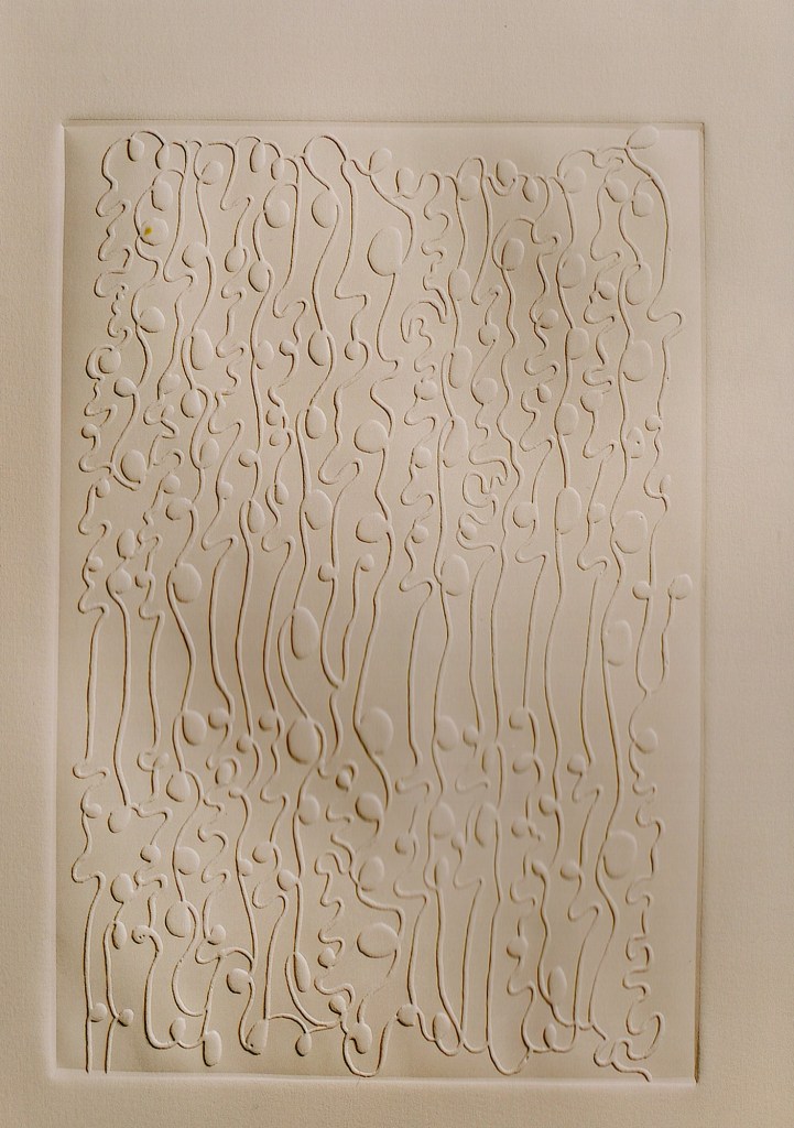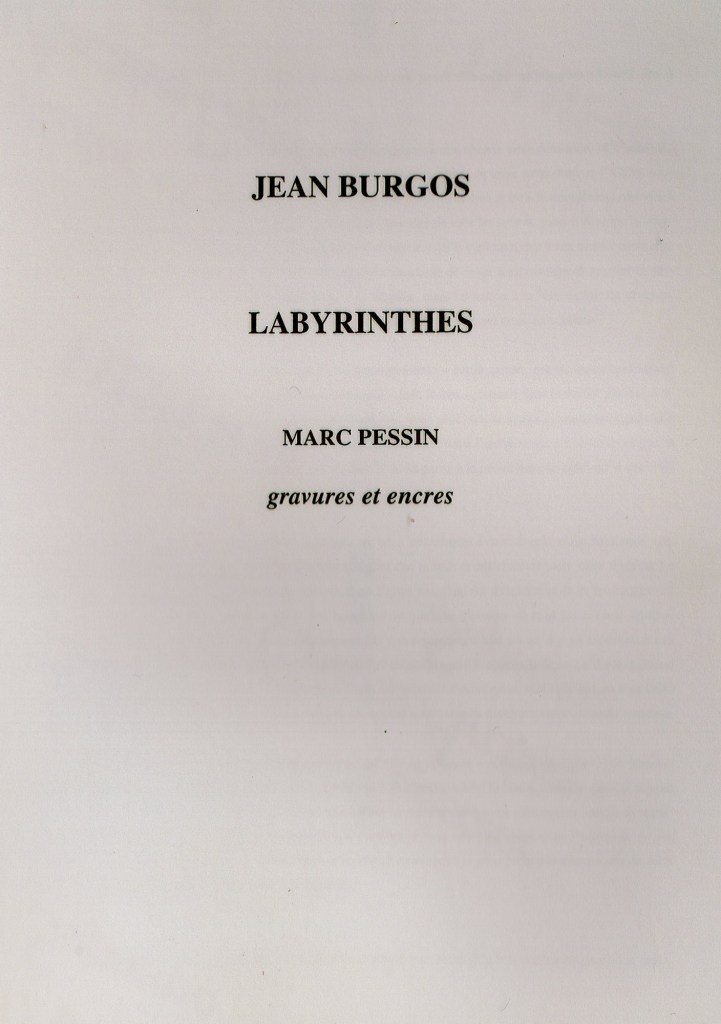 Edition originale d’un texte de Jean Burgos accompagné de 10 reliefs, formats divers, gravés par Marc Pessin et pressés dans son atelier, ainsi que 10 encres de Chine 30,5 x 21,5 cm pour cet ouvrage édité à 33 exemplaires sur Rivoli 38 x 28 cm, numérotés et signés par les auteurs.
