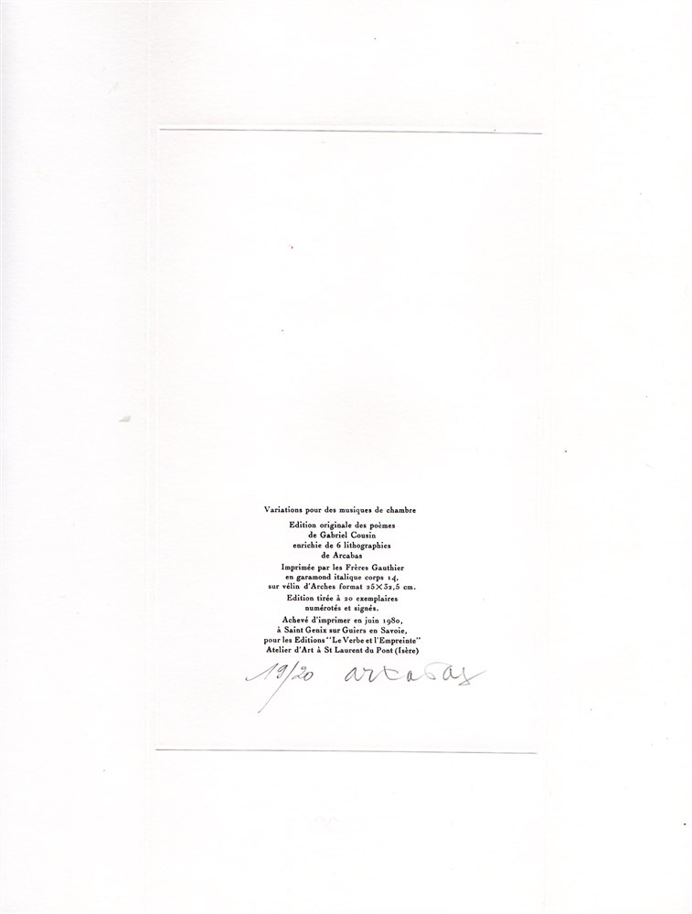 Edition originale – 1980 – 32.5 x 25 cm – 48ff. en vingt-et-un feuillets doubles, tirées sur f. libre – Couverture imprimée en noir et rouge – Six lithographies de Arcabas.