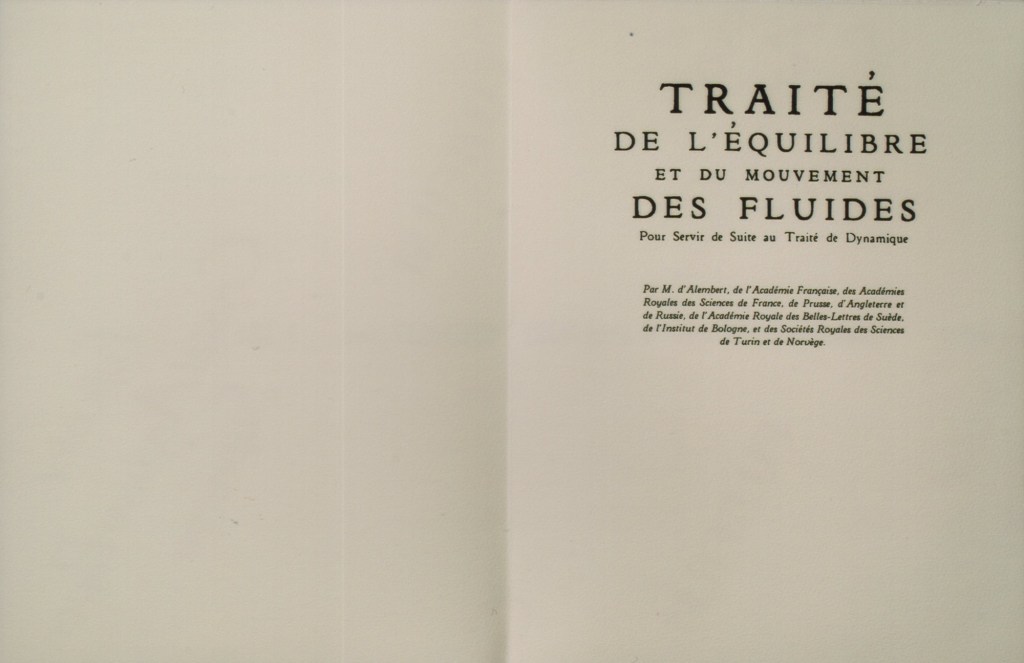 D’Alembert – Traité de l’équilibre et du mouvement des fluides