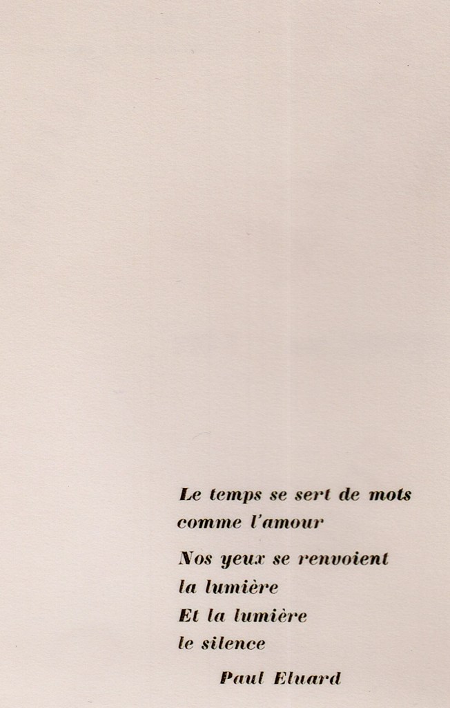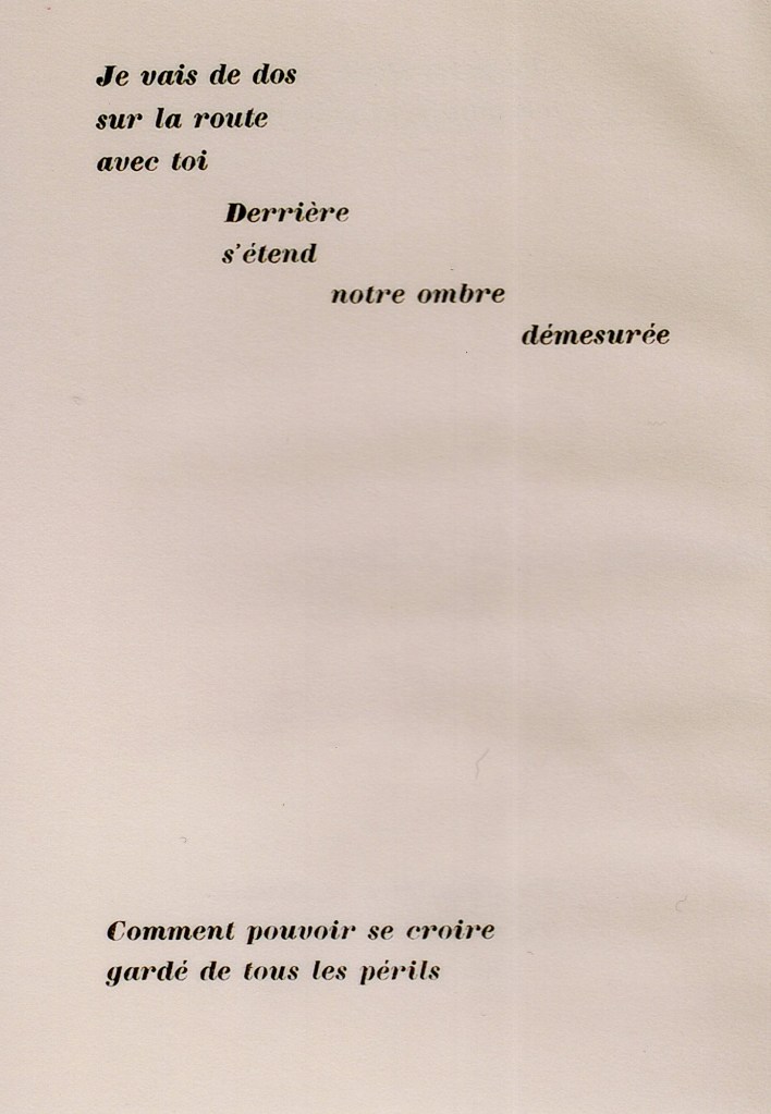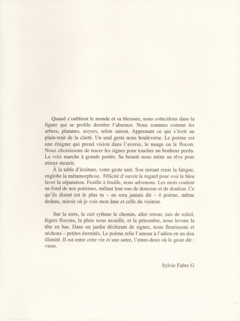 Poème de Sylvie Fabre G. composé en Garamond Italique corps 25 accompagné d’une gravure en relief de Marc Pessin.