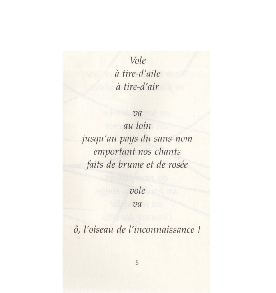 Edition originale des poèmes de Jong N.Woo accompagnés de 9 encres de chine de Michel Julliard interprétées en gravure par Marc Pessin et pressées dans son atelier à Saint-Laurent-du-Pont. Imprimé à 33 exemplaires par Jean-Jacques Sergent, typographe à Cléry-Saint-André, numérotés et signés par les auteurs en février 2005 pour les éditions « Le Verbe et l’Empreinte »