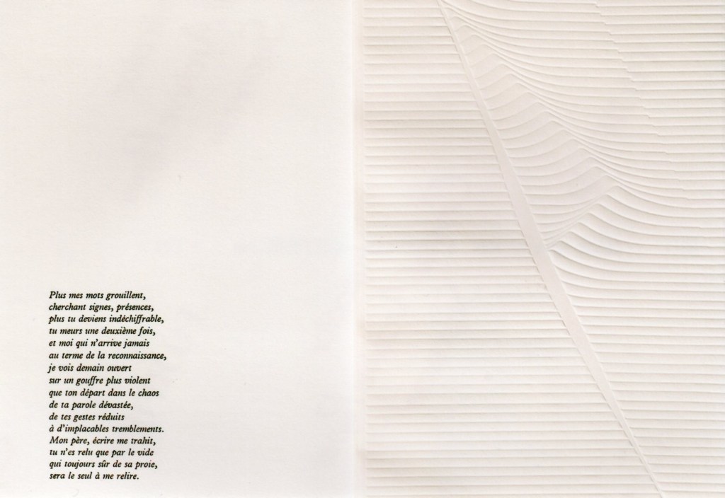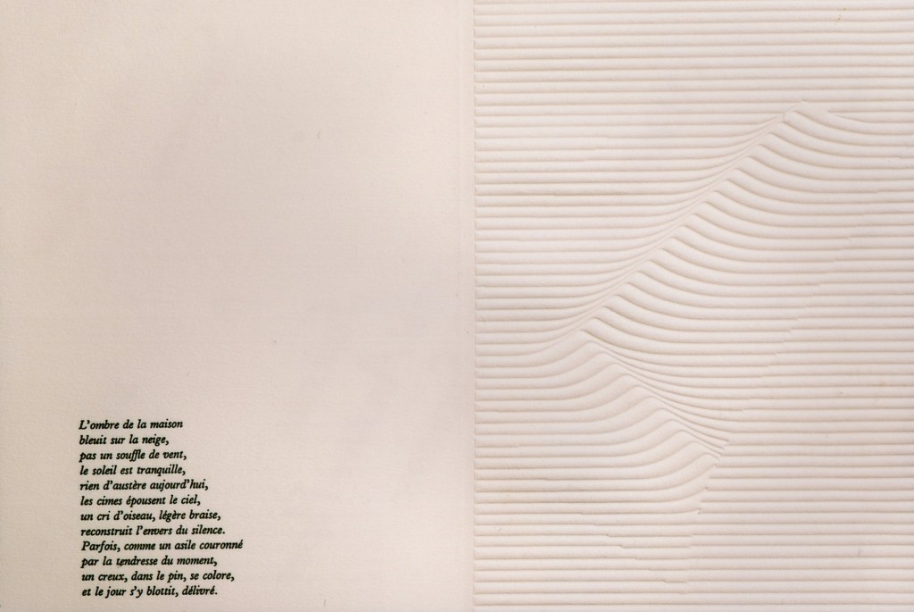 Manuscrit original calligraphié par l’auteur sur vélin d’Arches estampé à sec – Février 1991.